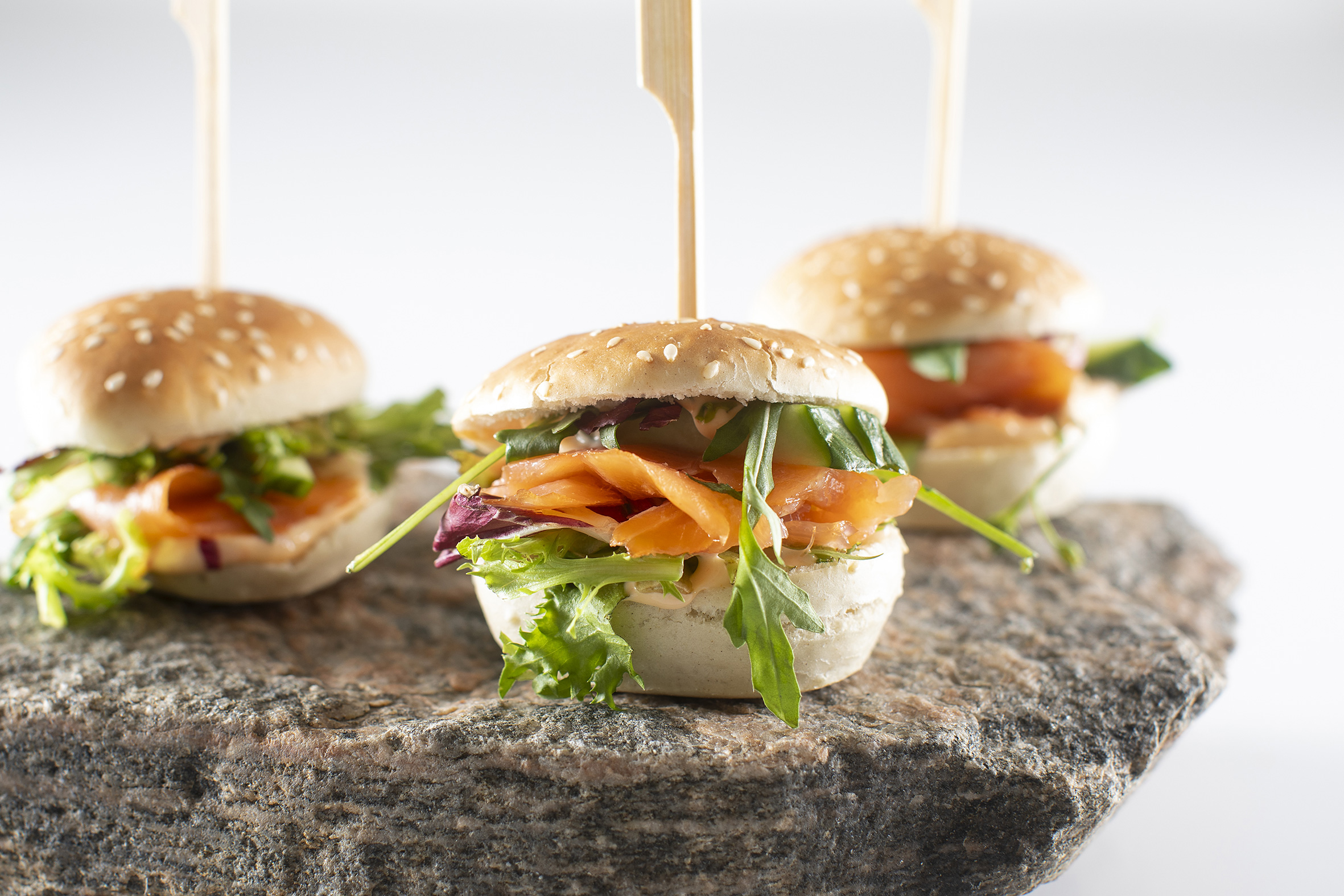 - Sliders med koldrøget laks og rygeostcreme
